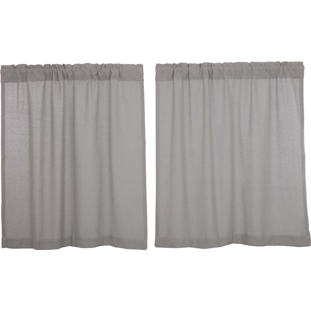 Create the perfectly charming country cottage window of your dreams with these 36 x 36 inch tier-style curtains. Featuring light and airy, dove grey burlap, the Burlap Dove Grey Tier Set provides just the right balance of privacy and sunshine. Pair with a matching valance or prairie swag for a fully decorated look or alone for a simple pop of texture and character. Also known as cafe or bistro curtains, these are a particularly good fit for decorating vintage kitchens, laundry rooms, and small bathroom windows.
