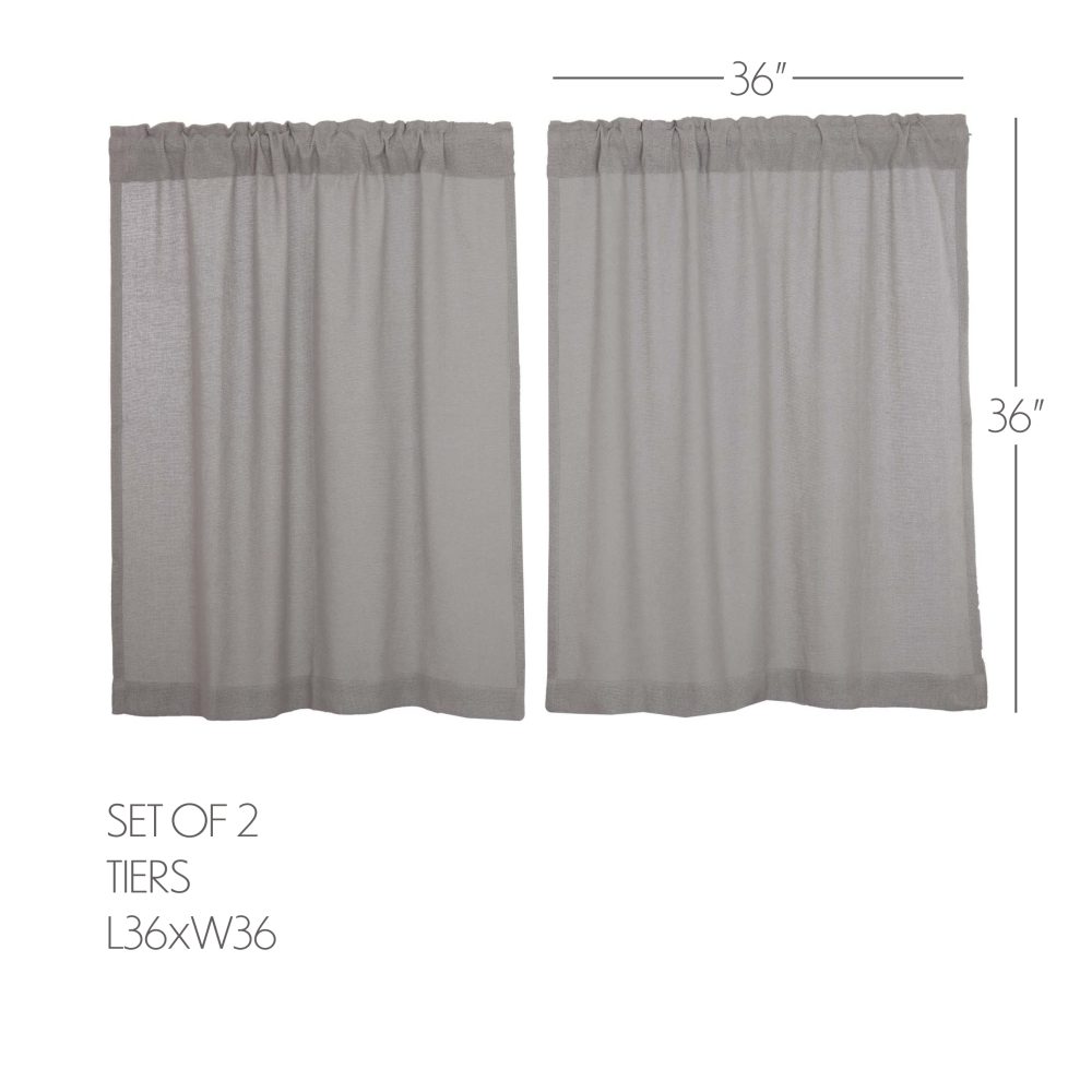 - FARMHOUSE TIER SET: Includes two 36 by 36 inch tier curtains with a 3.25 inch rod pocket. Tier or cafe curtains are a great way to add privacy while still allowing unfiltered sunlight to come through from above.