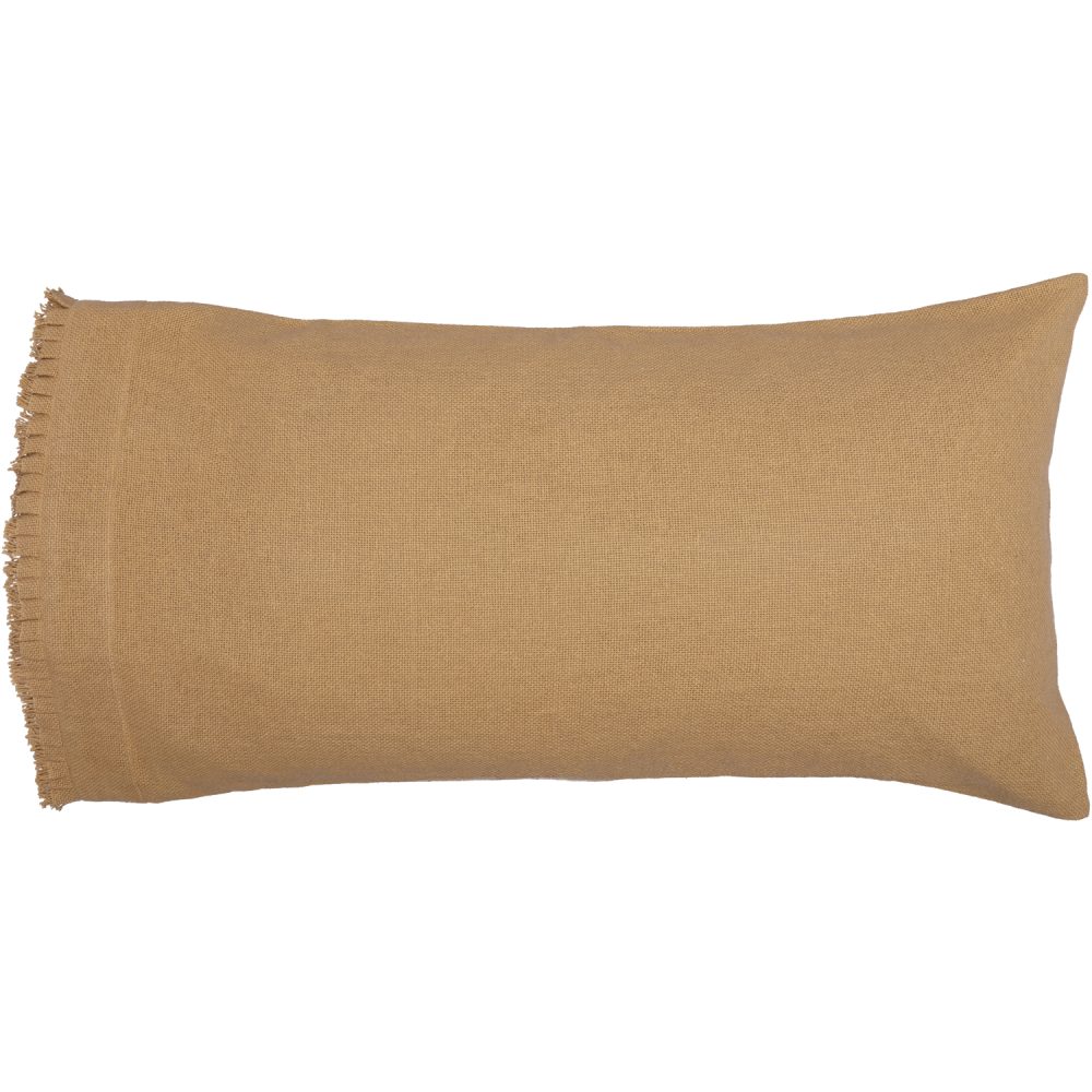 Burlap Natural King Pillow Case w/ Fringed Ruffle Set of 2 21×40