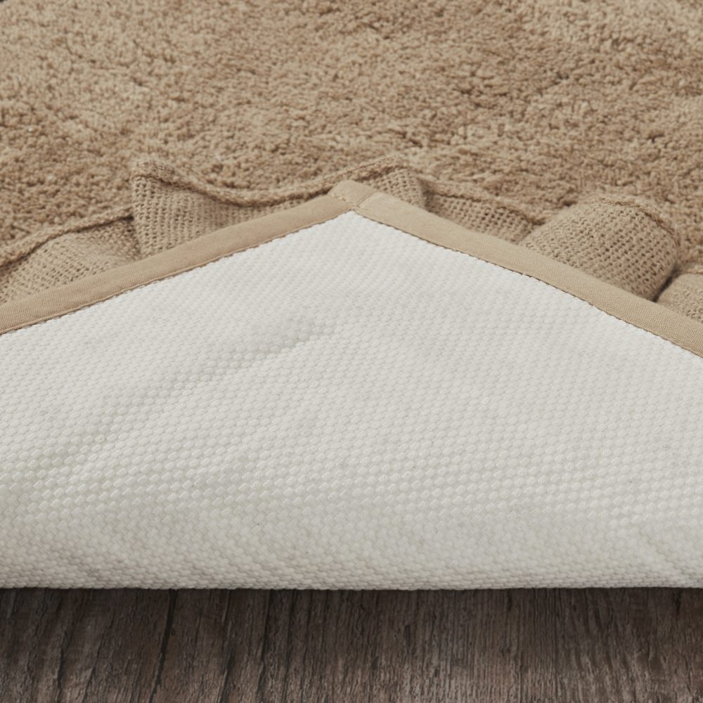 - NON-SLIP: Features a textured rubber backing to keep your absorbent bath rug safely in place without needing a separate rug pad.