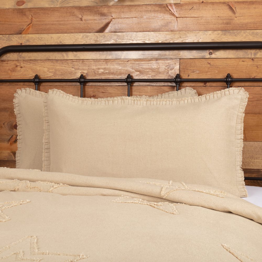 - FRINGED RUFFLED EDGING: Rustic details abound with this warm beige pillow sham crafted from textured burlap and edged in tight, delicate fringed ruffles.