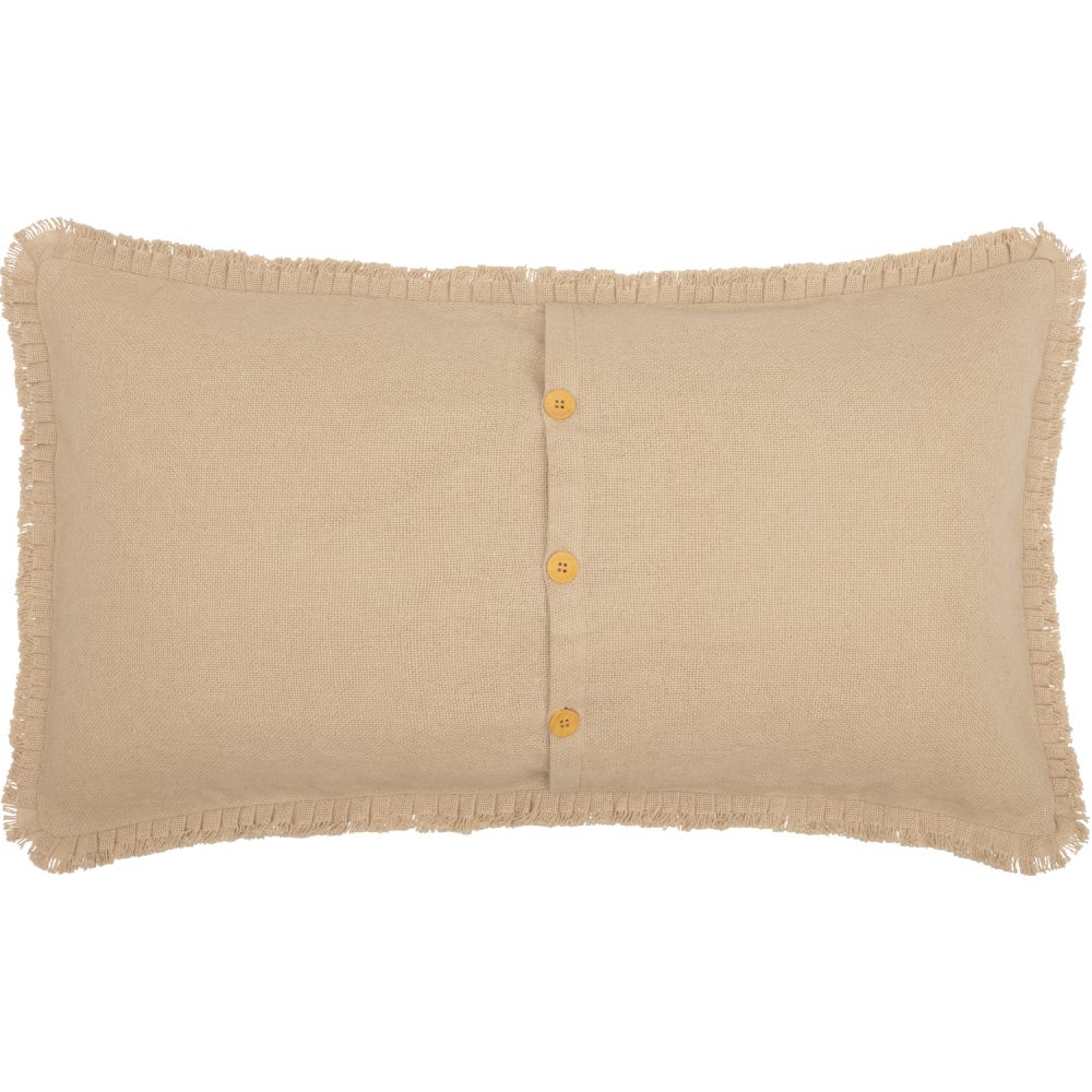 This farmhouse pillow sham’s button closure & fringed edges add rustic charm & texture to your bedding.