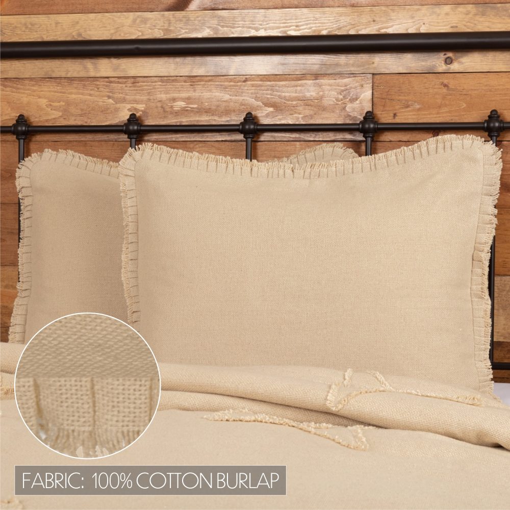 - FRINGED RUFFLED EDGING: Rustic details abound with this warm beige pillow sham crafted from textured burlap and edged in tight, delicate fringed ruffles.