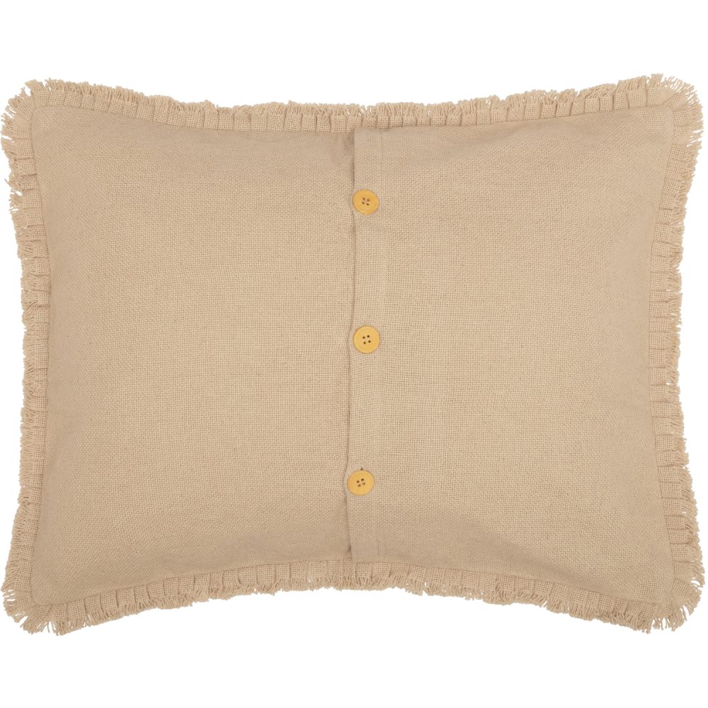 An incredibly versatile style to add the perfect amount of texture to your farmhouse decor. The Burlap Vintage Standard Sham with Fringed Ruffle is a classic 21x27 inch standard pillow sham featuring a soft, hand washable burlap fabric in a vintage tan shade. The loose, texture-rich weave of burlap and fringed ruffle detailing complements country, farmhouse, and cottage style decor while the tan coloring adds a warm, rustic touch. The flexible styling is further enhanced by button-style closures designed to allow for both sides of the sham to be proudly displayed. Place in your bedroom or on a comfy couch, upholstered bench, or cozy armchair to add charm and class to any space. 100% cotton shell with a dyed polyester lining.