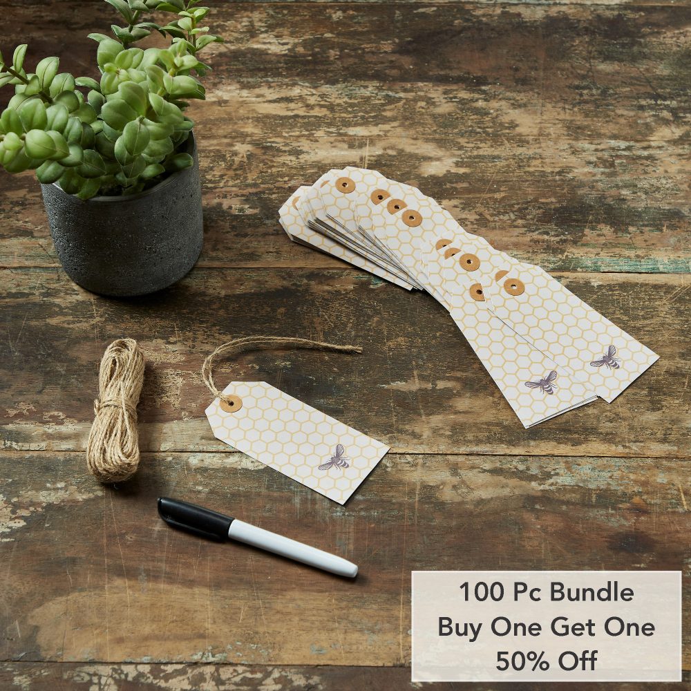 - Sku – 88453 – Buzzy Bees Bee Paper Tag 4.75×2.25 w/ Twine Set of 50 (2 Packages)
