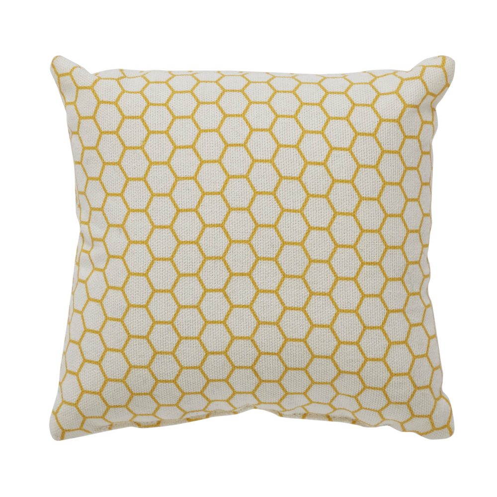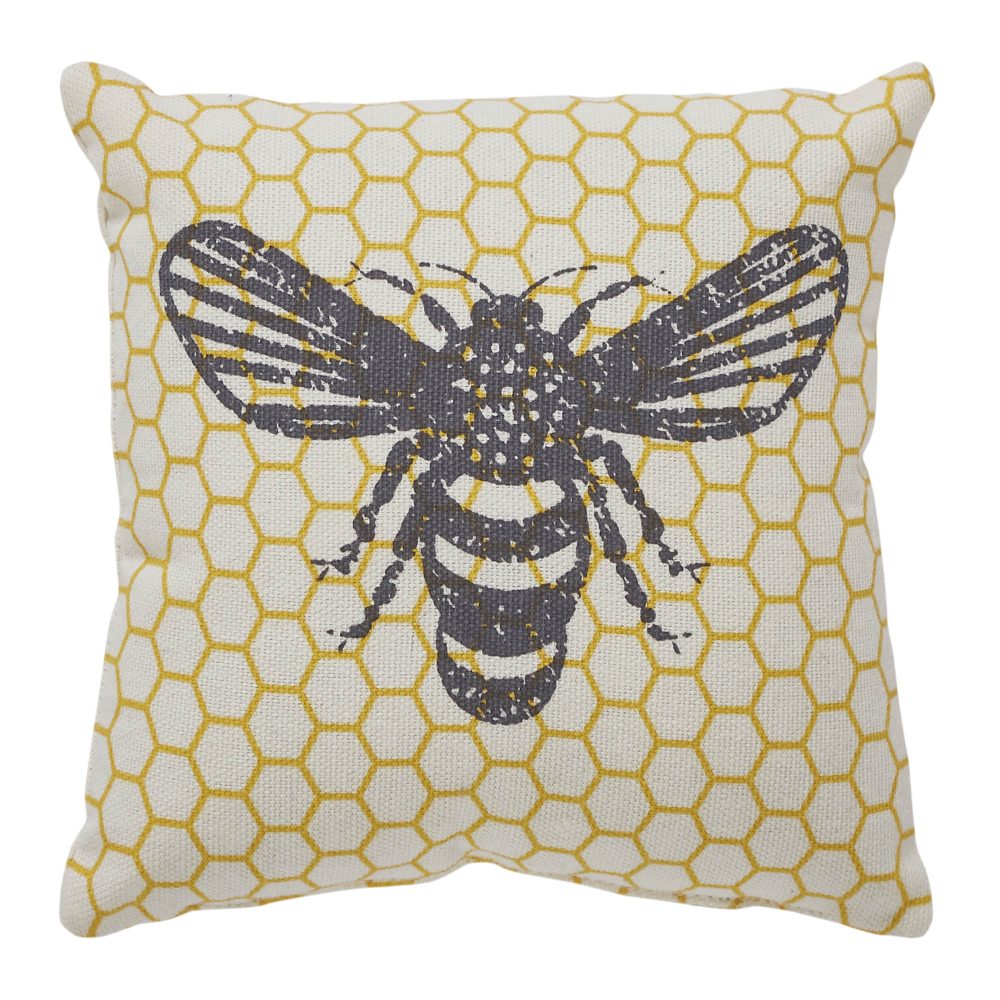 This charming pillow is perfect for adding a small touch of decoration to a cluster of accent pillows. It would make a great addition to a gift basket for beekeepers, gardeners, or anyone who loves honey. The screen printing is expertly crafted and the pillow is made with a cotton shell and polyester filling.