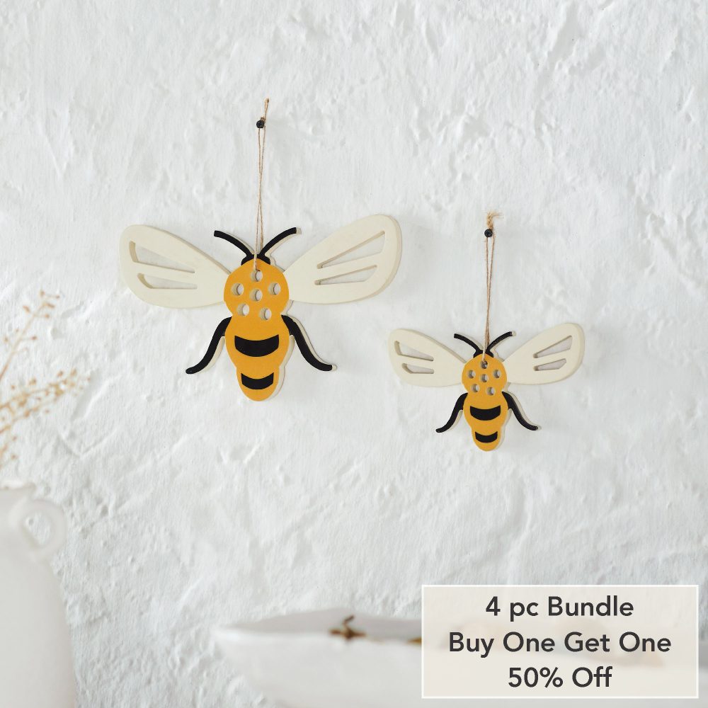- Sku – 88526 – Buzzy Bees Bee Shaped MDF Wall Hanging w/ Twine Set of 2 Sizes (2 Packages)