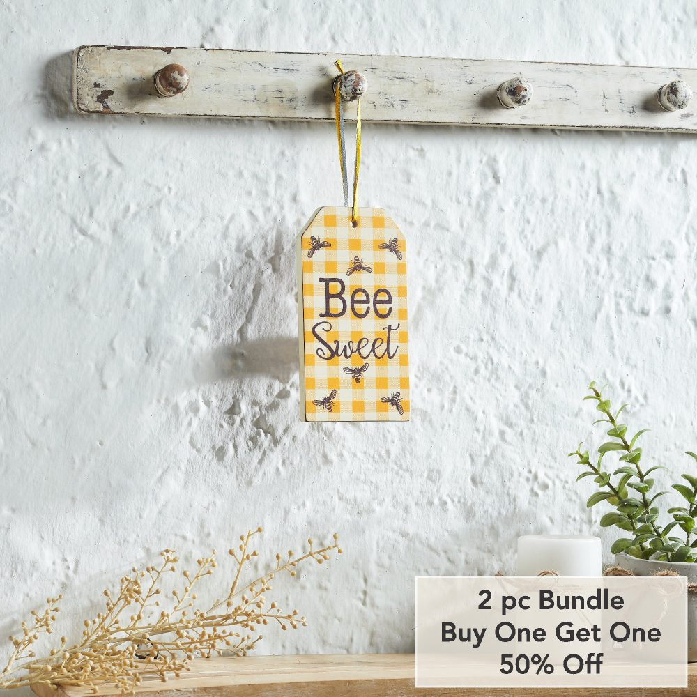 Be the first to review “Buzzy Bees Bee Sweet Honey Check MDF Tag Ornament w/ Ribbon 7×3.75×0.5 (2PC Bundle)”