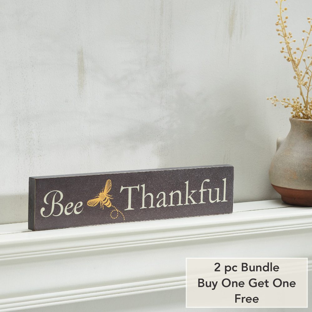- Sku – 88529 – Buzzy Bees Bee Thankful Grey MDF Wall Sign 3x14x0.75 (2 Packages)