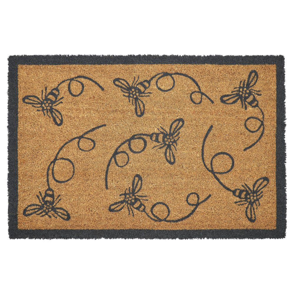 • Whimsical Bee Design: Features charming bees in dark grey flitting across a natural tan backdrop, creating a cheerful and inviting welcome for your entryway.