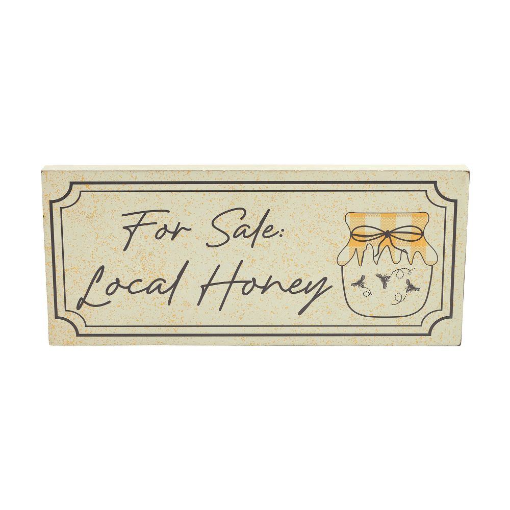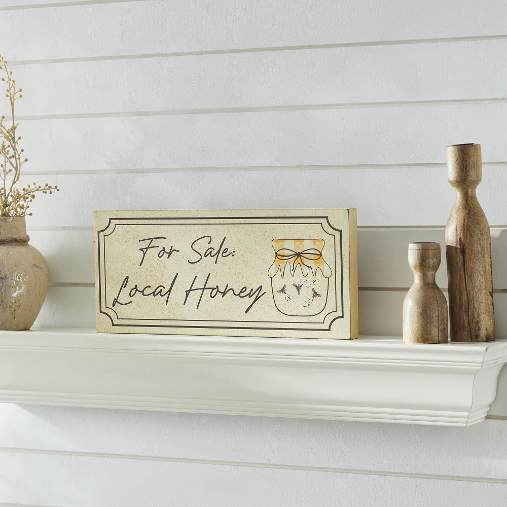 • Charming Design: Features the phrase “For Sale Local Honey” alongside a honey jar, with grey accents and a distressed finish for a rustic touch.