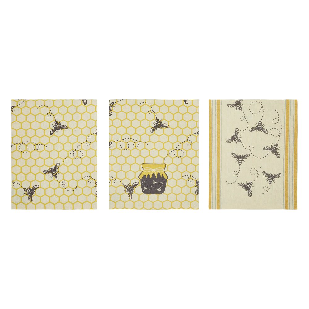 Buzzy Bees Honeypot Tea Towel Set of 3 16×28