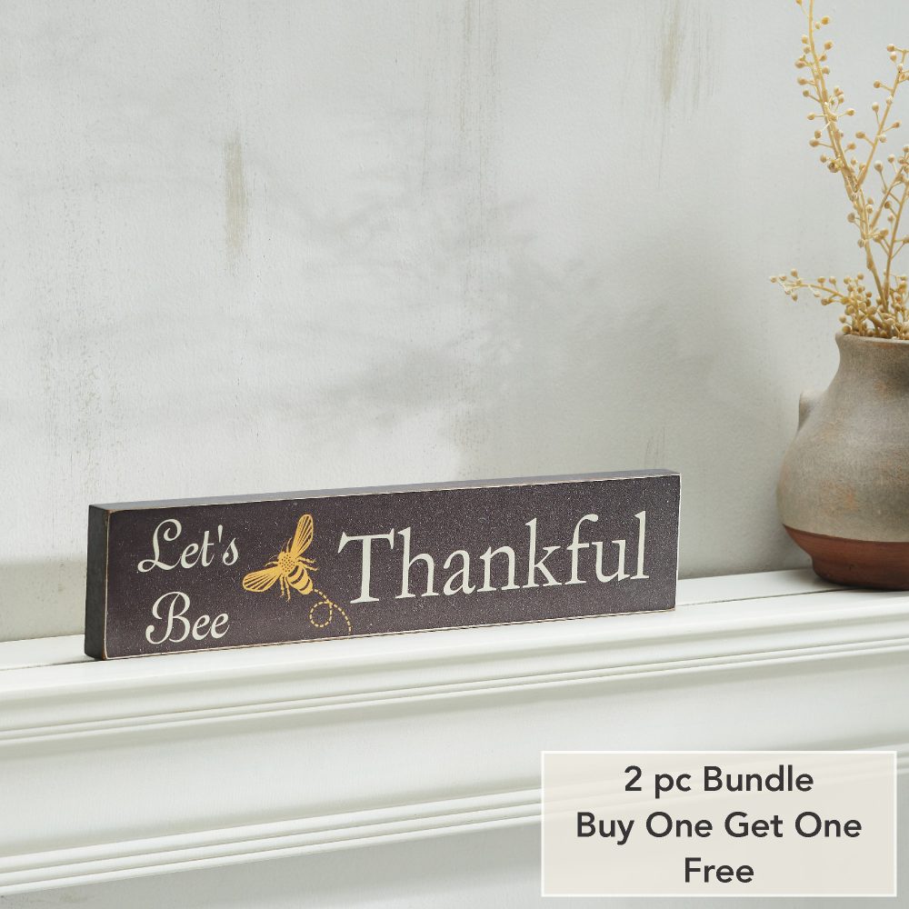 - Sku – 88536 – Buzzy Bees Let’s Bee Thankful Grey MDF Wall Sign 3x14x0.75 (2 Packages)