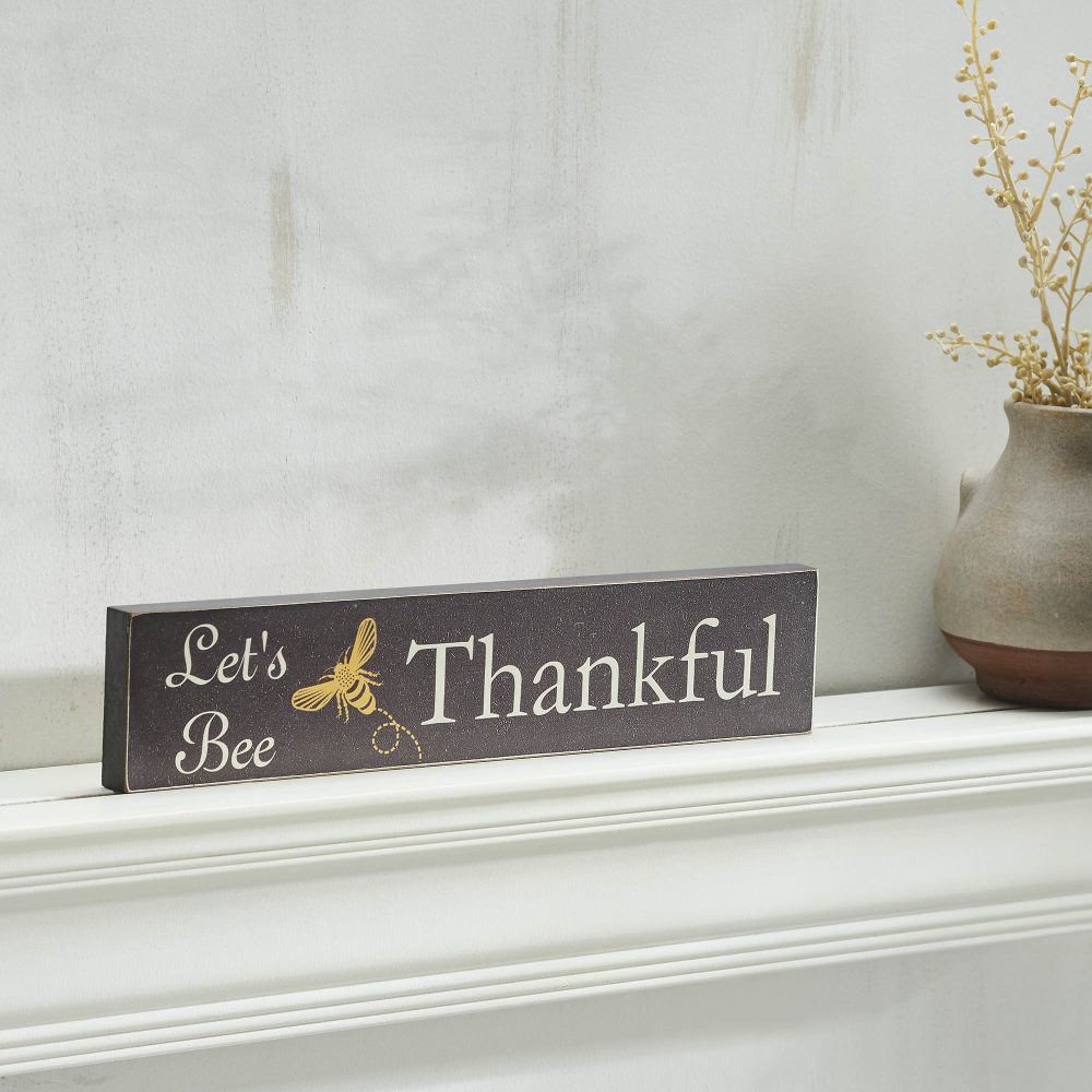 - Inspirational Message: Features the uplifting phrase “Let’s Bee Thankful” in antique white, complemented by a vibrant yellow honey bee.