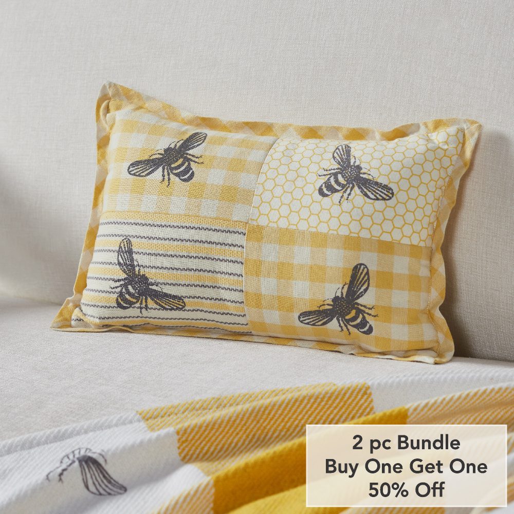 Buzzy Bees Patchwork Bee Pillow 9.5×14 (2PC Bundle)