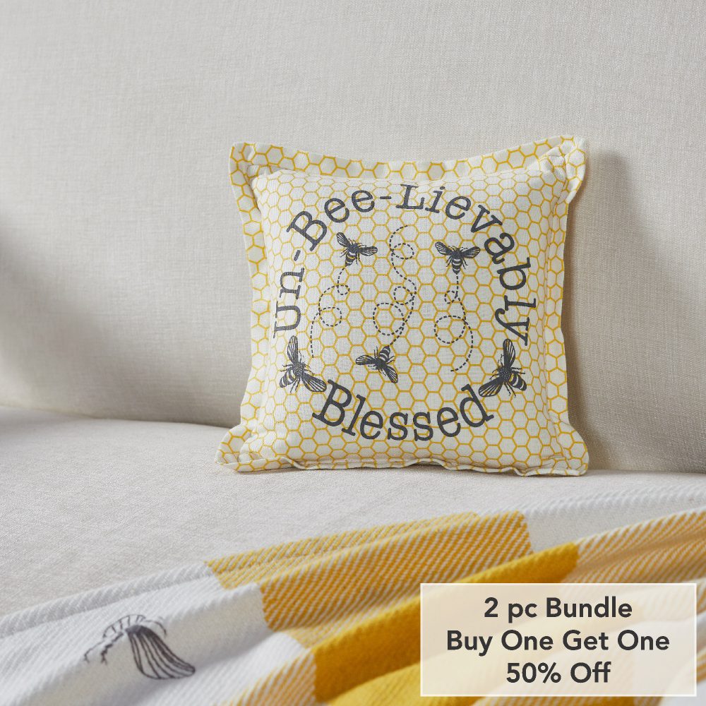 - Sku – 84451 – Buzzy Bees Un-Bee-Lievably Blessed Pillow 9×9 (2 Packages)