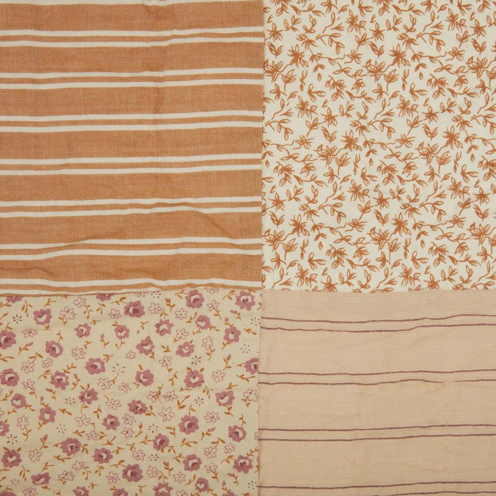 Be inspired to create a wonderfully warm and vintage bedding set brimming with comfort and soft, vintage details. The Camilia Quilted Patchwork King Sham 21x37 is carefully crafted with patchwork detailing featuring high-quality stitching and timeless fabrics for an heirloom quality look and feel. Fabric blocks include an array of vintage florals, stripes, and micro-checks in gold, soft white, and mauve for a warm, vintage farmhouse look. Crafted in 100% cotton. Backed with a ditsy floral fabric with tie-style closures. Coordinates wonderfully with the Camilia Collection from VHC for a complete look.