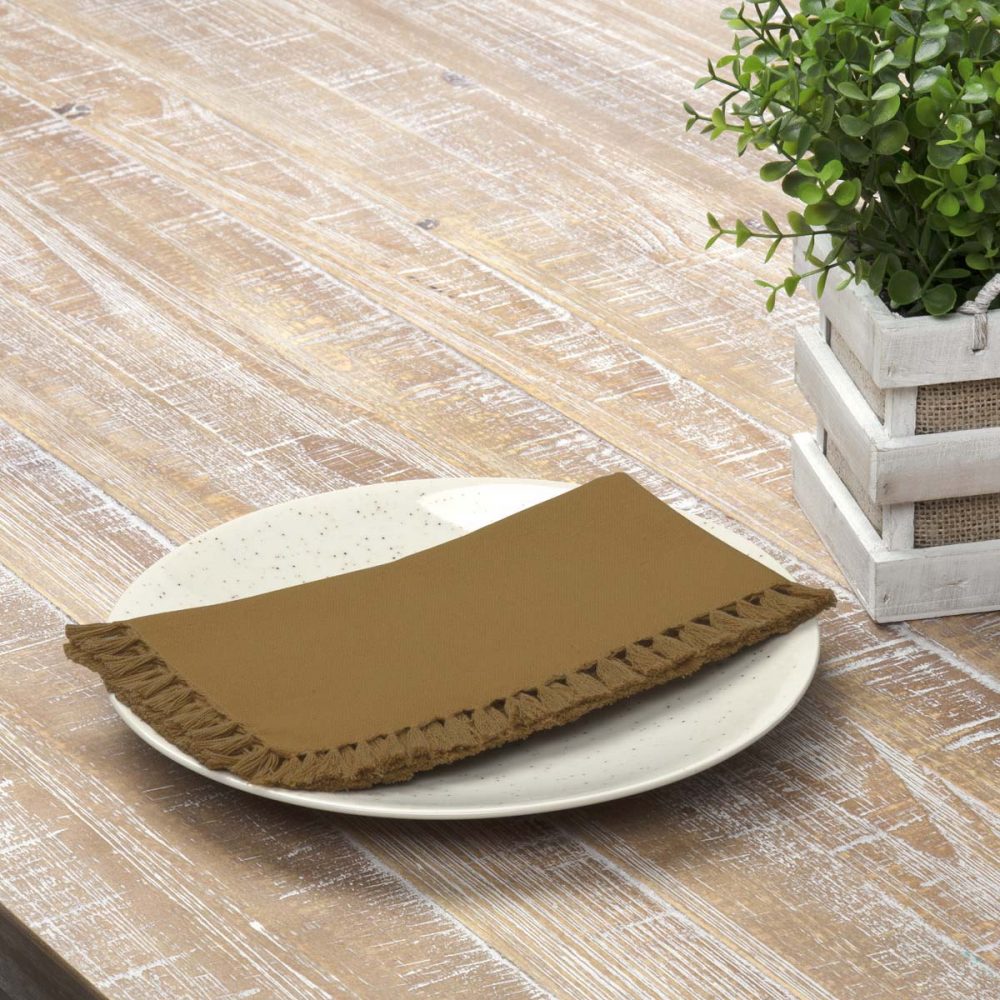 Enrich your farmhouse table setting with the Cassidy Gold Napkin Set of 6 18x18. The fringes are decorated with frills for a chic uplift and added texture. Simply fold as you wish and place at the dinner table for a family meal or special occasions. Pair them with a variety of color options in our Cassidy collection to change up the look for every gathering.