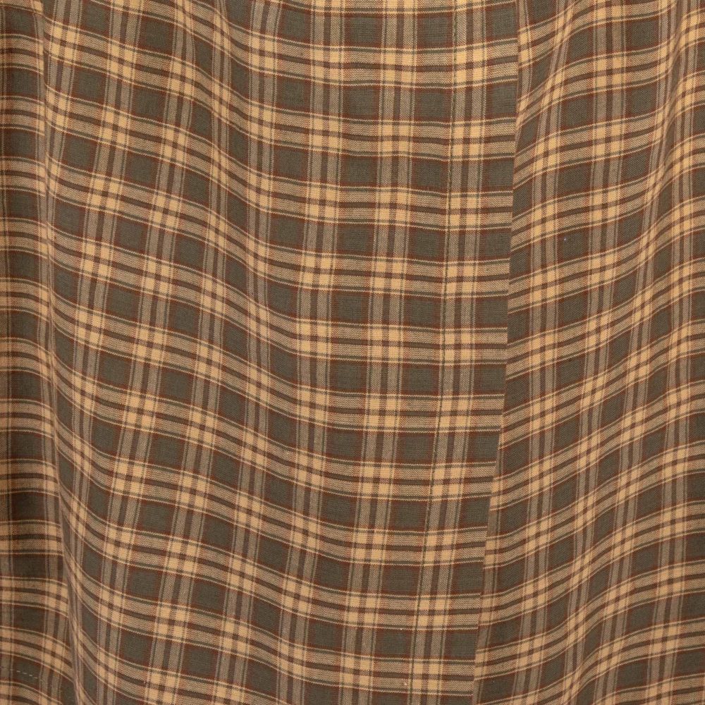 Bring the calm of the outdoors in with nature-inspired plaid in cedar green, tan and dark brown. The Cedar Ridge Queen Bed Skirt measures 60x80 inches and features a long 16-inch drop to ensure the skirt reaches your floor. The cozy, country style dust ruffle adds a lovely finishing touch to any room by complementing your decor while concealing under-bed storage and blocking dust accumulation in hard-to-reach areas. Made of 100 percent cotton, this rustic, checked bed skirt is machine washable and iron safe. Coordinates with the Cedar Ridge Collection by VHC for everything you need to create the style of a warm, rustic cabin retreat throughout your home.
