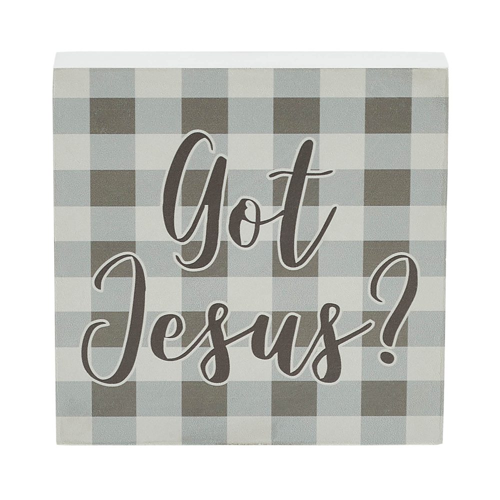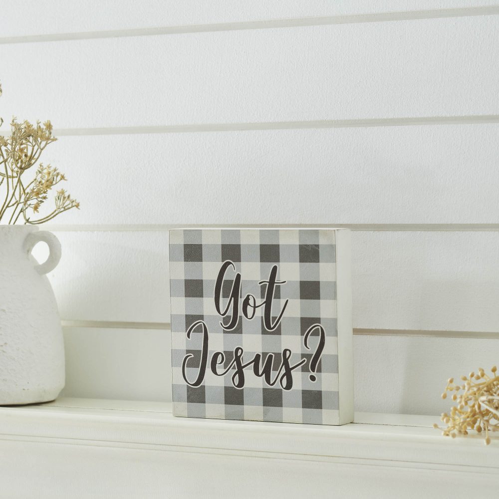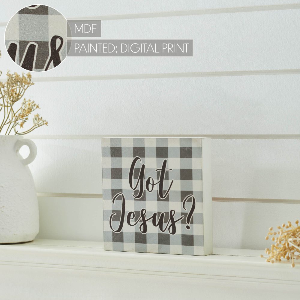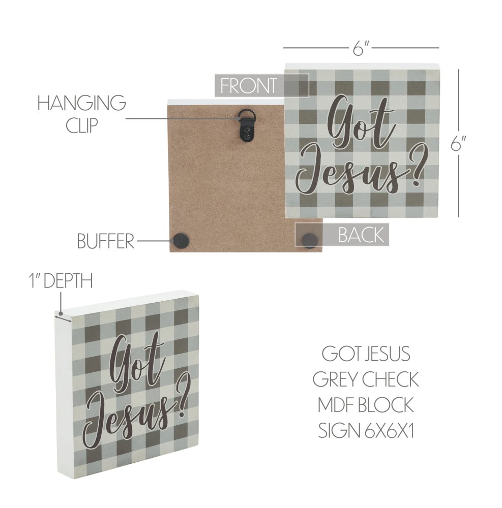 Add a touch of faith and style to your home with the VHC Brands Celebrate Grace MDF Block Sign, featuring the thought-provoking question, "Got Jesus?" Printed in grey against a charming grey and white two-tone plaid background, this 6x6 inch square sign brings a rustic farmhouse appeal to your decor. The worn edges and distressed appearance add to its timeless, country charm. Crafted from durable MDF, this block sign is designed for versatility and ease of use. Whether placed in the bathroom, bedroom, dining room, entryway, kitchen, or living room, its inspirational message and classic design make it a perfect fit for any spring decor. The digital print ensures that the text is clear and prominent, enhancing the sign's overall visual appeal. Maintaining the sign's pristine condition is simple-just wipe clean with a soft cloth. The Celebrate Grace MDF Block Sign not only enriches your home with a meaningful message but also complements various decorating styles with its farmhouse and country aesthetics. Ideal for personal use or as a thoughtful gift, this sign is a beautiful addition to any space, embodying both faith and elegance.