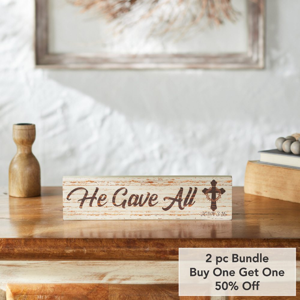 - Sku – 88549 – Celebrate Grace He Gave All w/ Crown Of Thorn On Cross MDF Wall Sign 2.75x11x0.75 (2 Packages)