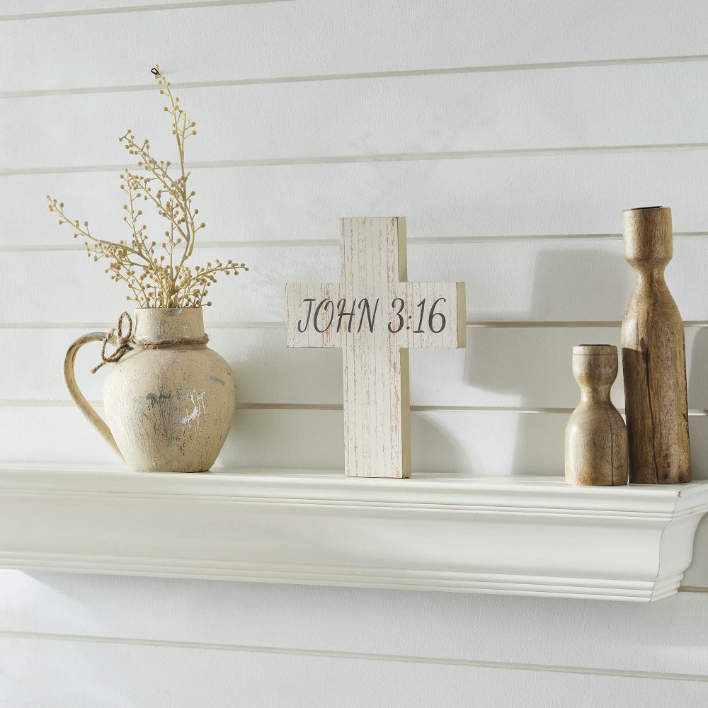 - Scripture Verse: Displays “John 3:16” in faded black on a wooden cross, emphasizing a powerful Christian message.