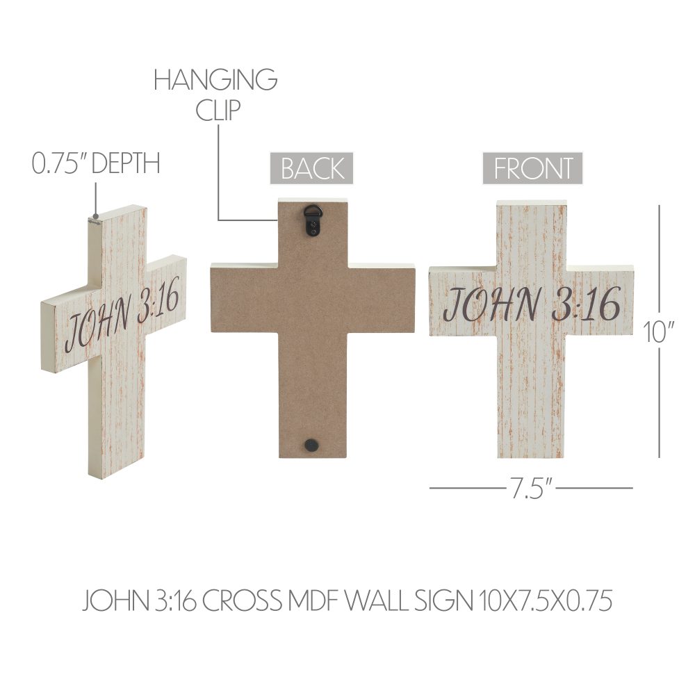 The VHC Brands Celebrate Grace John 3:16 Cross MDF Wall Sign is a poignant and decorative piece that captures the essence of Easter and springtime faith. Measuring 7.5x10 inches, this sign prominently features the scripture reference John 3:16, elegantly rendered in faded black against a distressed, aged cream background. The wooden cross design lends a rustic charm that complements its spiritual message. Crafted from MDF, this wall sign embodies a farmhouse and country aesthetic that is both timeless and inspiring. The digital print process ensures that the verse stands out beautifully, while the distressed appearance adds a touch of vintage allure. The color palette of aged cream, natural brown, and faded black enhances the sign's classic and understated elegance. Perfect for a variety of settings, from the entryway to the living room, this sign adds a meaningful touch to your seasonal decor. Its durable construction allows for easy maintenance with a simple wipe clean using a soft cloth. The Celebrate Grace John 3:16 Cross MDF Wall Sign not only enriches your space with its faith-inspired message but also serves as a beautiful testament to the core values of Easter.