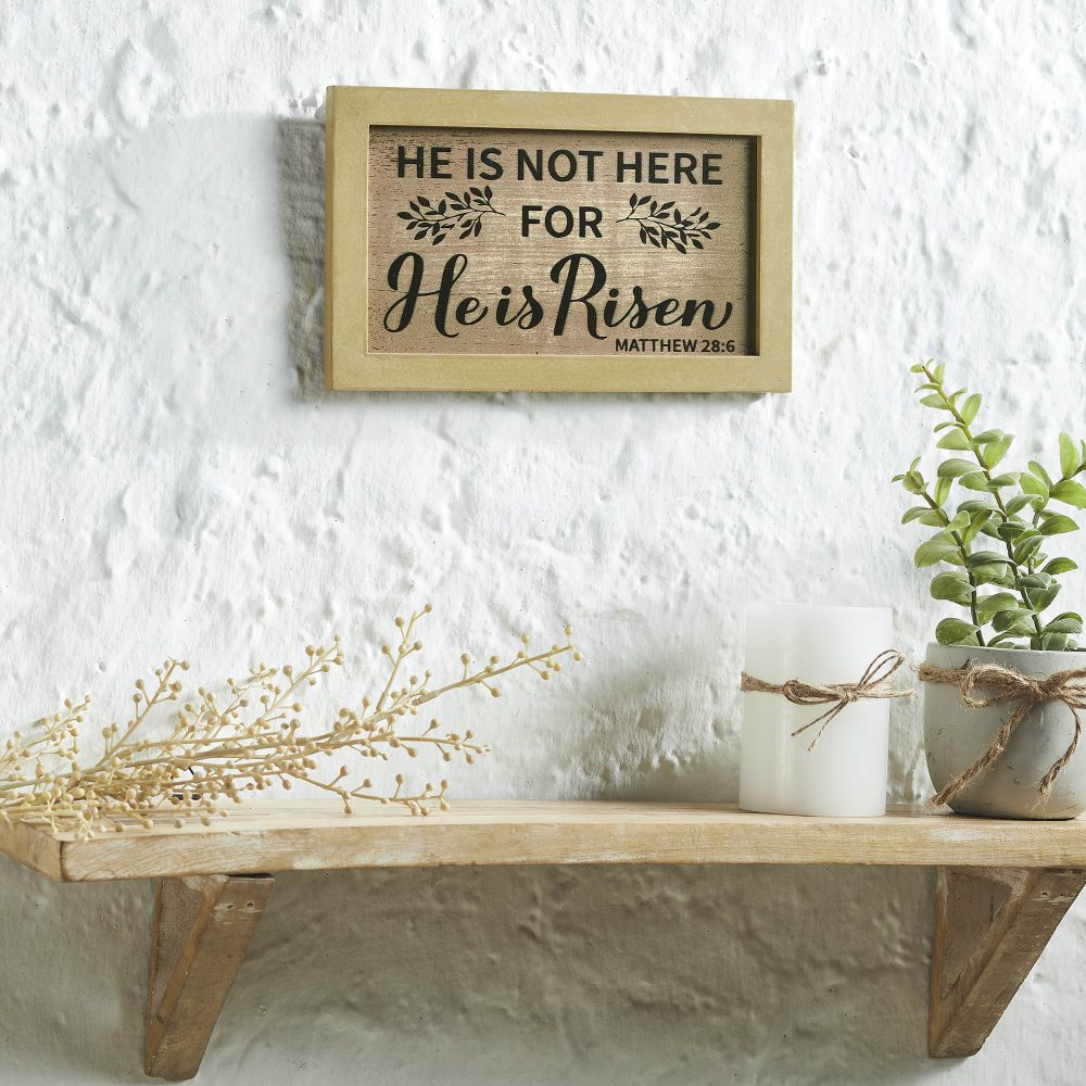 • Sku – 88570 – Celebrate Grace Matthew 28:6 He Is Risen MDF Wall Sign 6x10x0.5 (2 Packages)