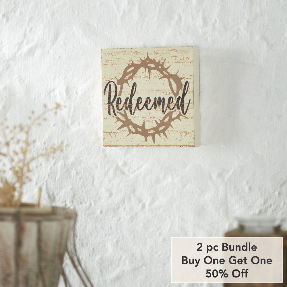 - Sku – 88554 – Celebrate Grace Redeemed w/ Crown Of Thorn MDF Block Sign 6x6x1 (2 Packages)
