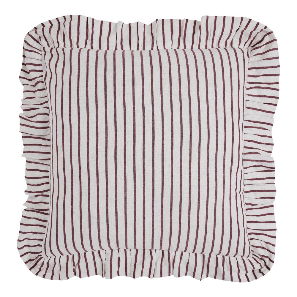 Be inspired to create a cozy Americana bedding set brimming with vintage and stylishly patriotic details. The Celebration Fabric Euro Sham features a classic ticking stripe pattern with a soft creme base and barn red stripes. Soft ruffles add a feminine touch while wood button closures add a lighthearted country feel. Fabric is made from 89 percent cotton and 11 percent flax for superior durability and a delightful, textured feel. Pair this striped pillow sham with other pieces from the Celebration collection to take your home from trendy to timeless. Machine washable and iron safe.
