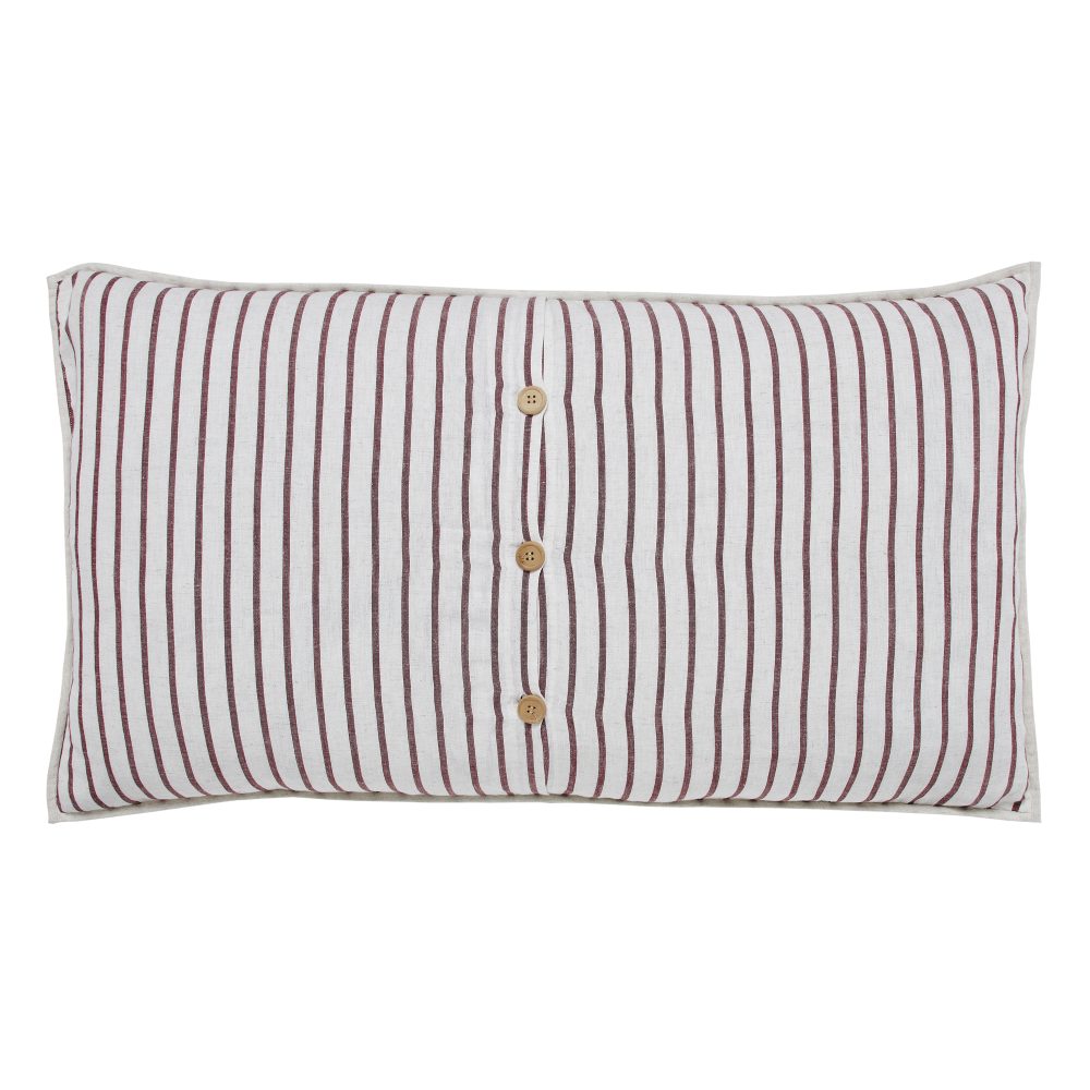 - QUILTED KING SHAM: Includes one 21 by 37 inch King Sham with quilted details and button closures. Reverse side of sham features a vintage ticking stripe in barn red and soft cream.