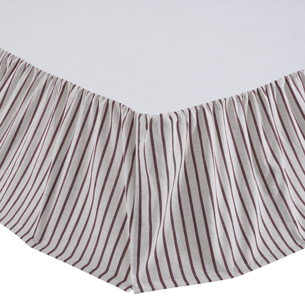 Build a stylishly Americana bedroom with dark, elegant tones of brick red and creme white on heirloom-quality fabric. The Celebration Queen Bedskirt 60x80x16 completes the look of your country chic bedding with soft ticking stripes for vintage appeal. This cotton dust ruffle is the perfect blend of practical and stylish. Features a long 16-inch drop to ensure that the fabric reaches your floor for a neat, put-together look that blocks under-bed storage from view while also keeping dust out of hard-to-reach areas. VHC bedskirts are also designed with split corners and slight ruffling for less fuss and a great fit every time. Coordinates with the Celebration Collection by VHC for a complete timeless Americana farmhouse look for your bedroom featuring red, white and blue stars and stripes. Machine washable and iron safe.
