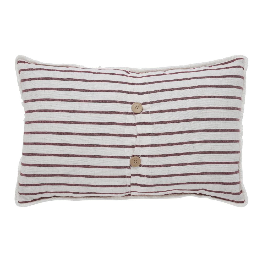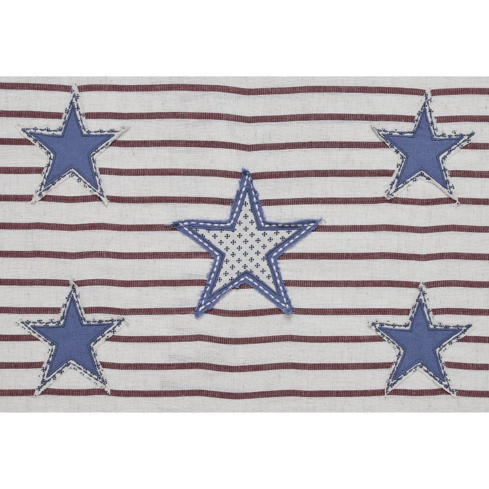 Add a festive touch to your farmhouse home decor with a sweet, Americana style throw pillow. The 14x22 Celebration Star Applique Pillow features a cream and barn red ticking stripe base accented by double layer applique stars in stone blue with primitive, homestyle stitching on the front. The rectangular pillow is backed by the same striped fabric with a wooden, button-style closure. Pair this farmhouse chic decorative pillow with additional Americana decor to quickly transform your entire living room or add to an entryway bench for a little taste of country style to welcome guests. For an Americana look with the quality you've come to expect from over 25 years of happy customers, pair with other red, white, and blue home staples and accessories from the Celebration Collection by VHC.
