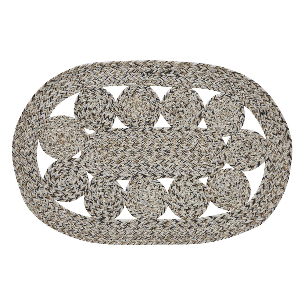 Create a joyful table both inside and out for friends and family to gather round with earth-tone colors and a classic design. The Celeste Pebble Placemat an individual mat measuring 13x19 inches. The braided placemat is made from recycled PET material for a water-resistant weave that can be used on traditional tabletops, or for sprucing up a patio table with farmhouse charm. Complete your tabletop decor with other pieces from the Celeste Collection by VHC for a classic woven design alternating rows and circles creating a timeless country farmhouse style.