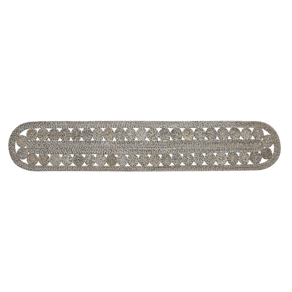 Create a joyful table both inside and out for friends and family to gather round with earth-tone colors and a classic design. The Celeste Pebble Table Runner includes one table cover measuring 12x72 inches. The braided runner is made from recycled PET material for a water-resistant weave that can be used on traditional tabletops, or for sprucing up a patio table with farmhouse charm. Complete your tabletop decor with other pieces from the Celeste Collection by VHC for a classic woven design alternating rows and circles creating a timeless country farmhouse style.