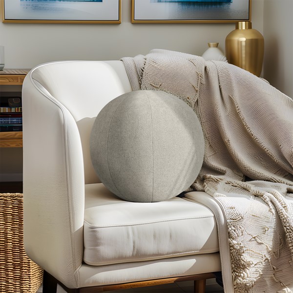 Create an outstanding and exclusive look to your space with the Chapel Hill Round Ball pillow. The 11" round silhouette brings a touch of playfulness and adds an element of unique visual interest. Dressed in a subtle neutral tone with a cozy texture, this accent is charming yet sophisticated, perfect for adding that extra finishing touch to our Chapel Hill chairs, sofas and benches. Made of 100% polyester with a sewn closure. For best results, spot clean with a soft cloth.