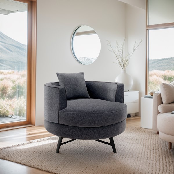 This modern lounge chair is ready to use and will arrive fully assembled. Whether adding a sophisticated touch to your home or creating a cozy office nook, the Harper Swivel Chair combines contemporary style with practicality.