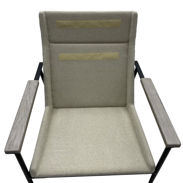 solid wood and Plywood frame, red oak arm, metal legs,High resilience Foam(D28 for back, H35 for seat),100% Polyesterfabric