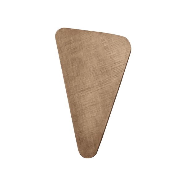 * Triangle-shaped wood table with a modern design