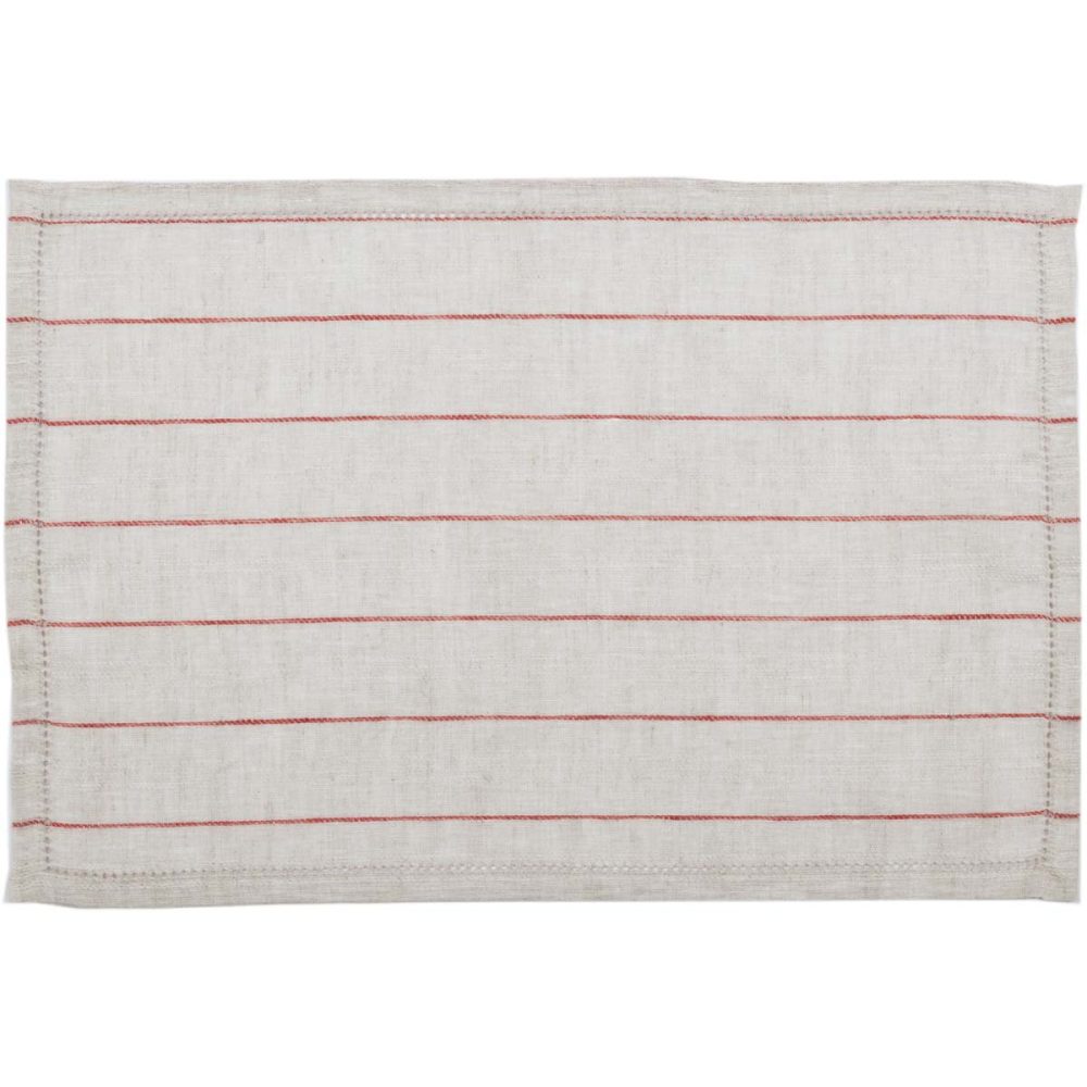 The Charley Red Placemat Set features a red embroidery on parchment shade linen to create a simple country charm for your table setting. Subtle embroideries give texture and definition to this placemat set. Our 100% linen placemat set is a simple yet sophisticated look that helps create a warm atmosphere in your country style kitchen.