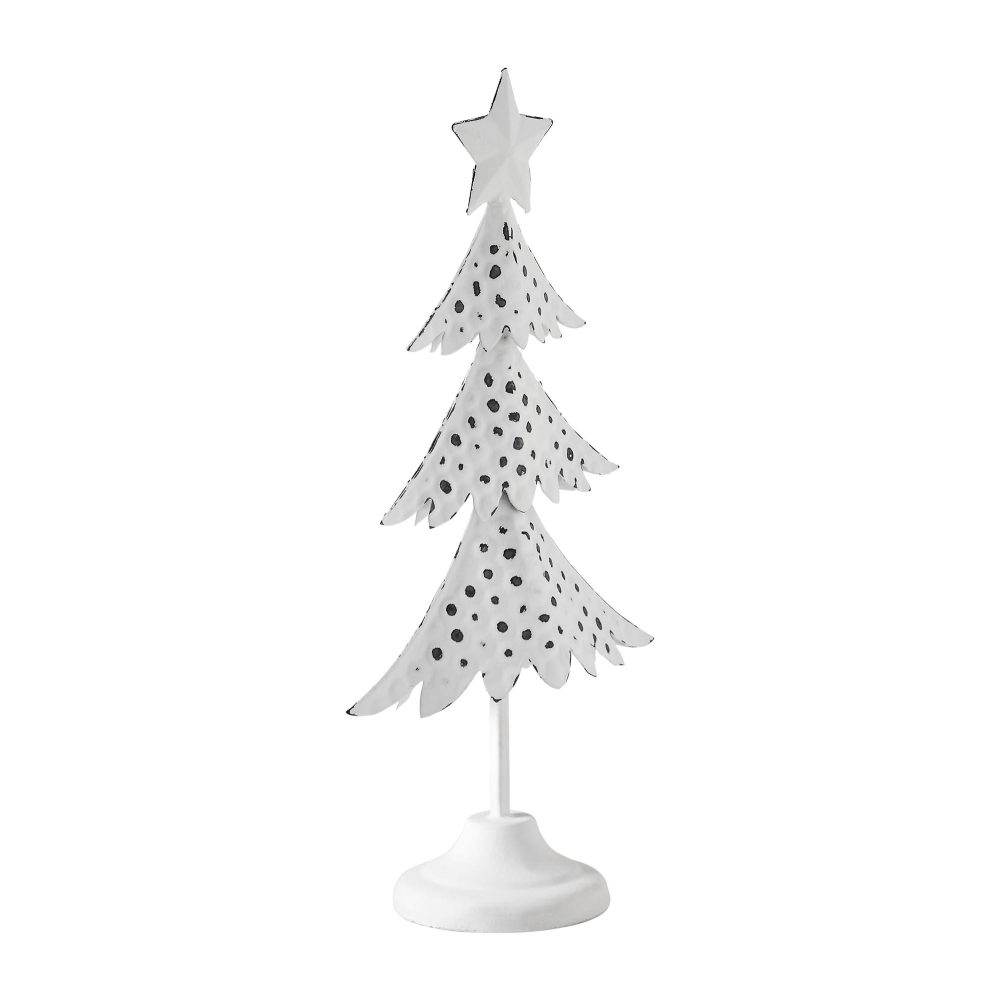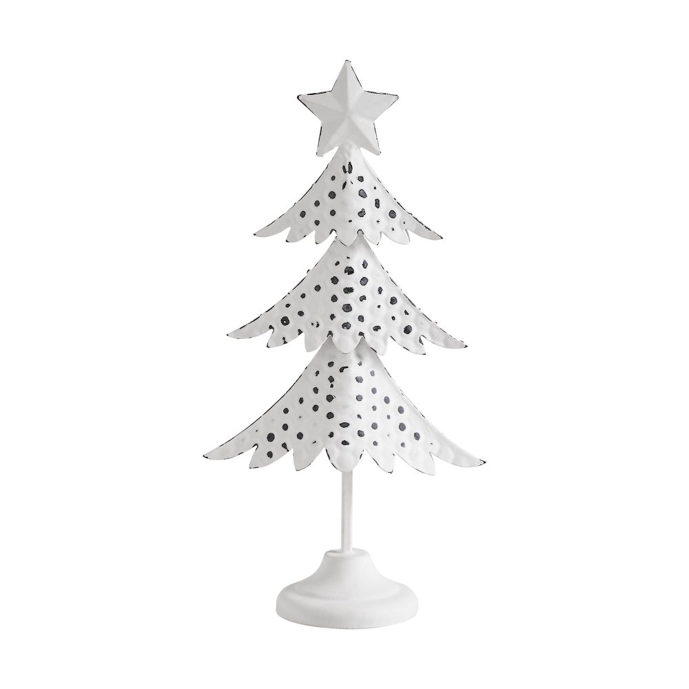Enhance the ambiance of your winter and Christmas decor with the timeless elegance of the VHC Brands Metal Christmas Tree Antique White Figurine. Standing at 11.25 inches tall, this charming metal figurine embodies the spirit of the holiday season with its classic design and rustic allure. Crafted from sturdy metal, this figurine features a delightful Christmas tree silhouette complete with intricate details and a star topper, adding a touch of festive whimsy to any tabletop or shelf. The antique white finish exudes a vintage-inspired charm that complements a variety of decor styles, from traditional to rustic. Its primitive and rustic aesthetic enhances its cozy appeal, making it a versatile accent piece for your dining room, entryway, or living room decor. Whether displayed on its own or paired with other holiday decorations, this figurine brings a sense of nostalgia and warmth to your home during the winter months and Christmas festivities. Maintaining the pristine appearance of this metal Christmas tree is effortless - simply wipe it clean with a soft cloth as needed to keep it looking its best throughout the holiday season. With its enduring charm and distressed appearance, the VHC Brands Metal Christmas Tree Antique White Figurine adds a touch of vintage-inspired beauty and holiday cheer to your indoor decor, making it a cherished part of your winter and Christmas celebrations for years to come.