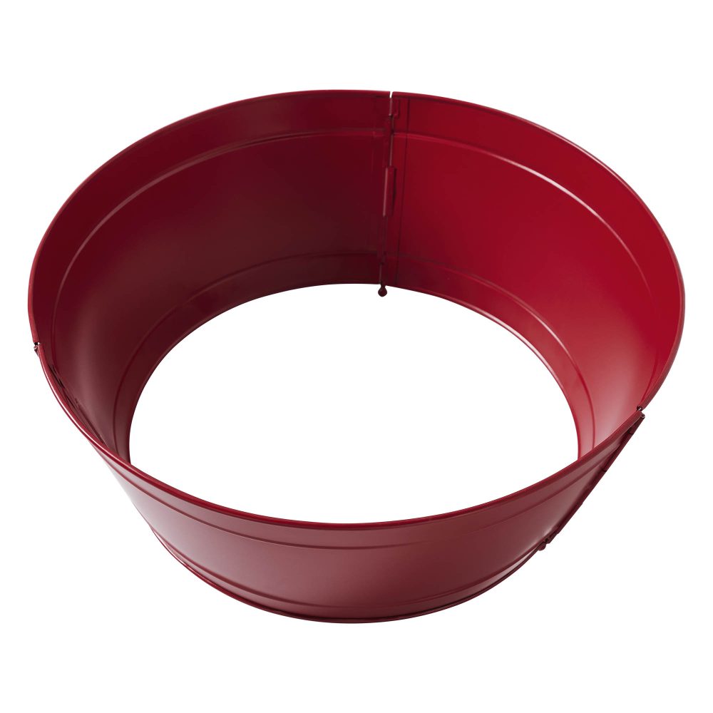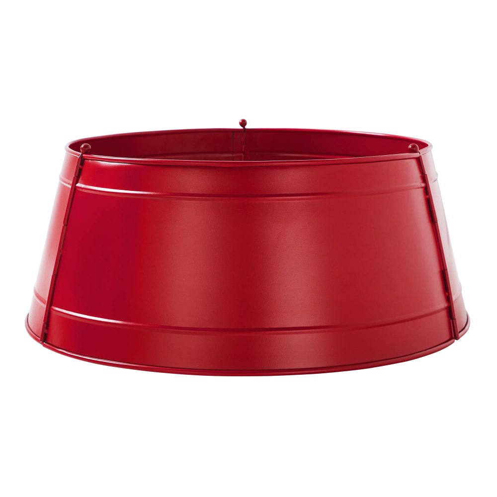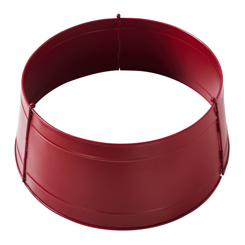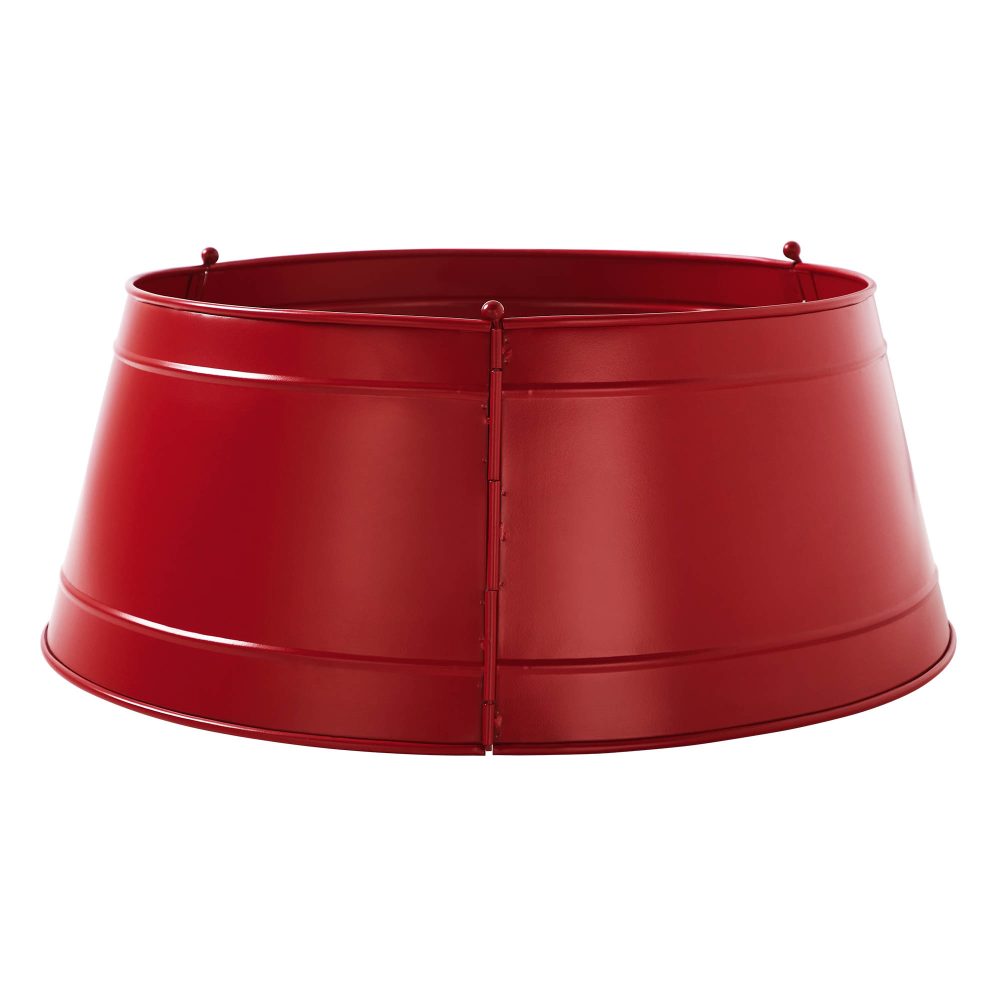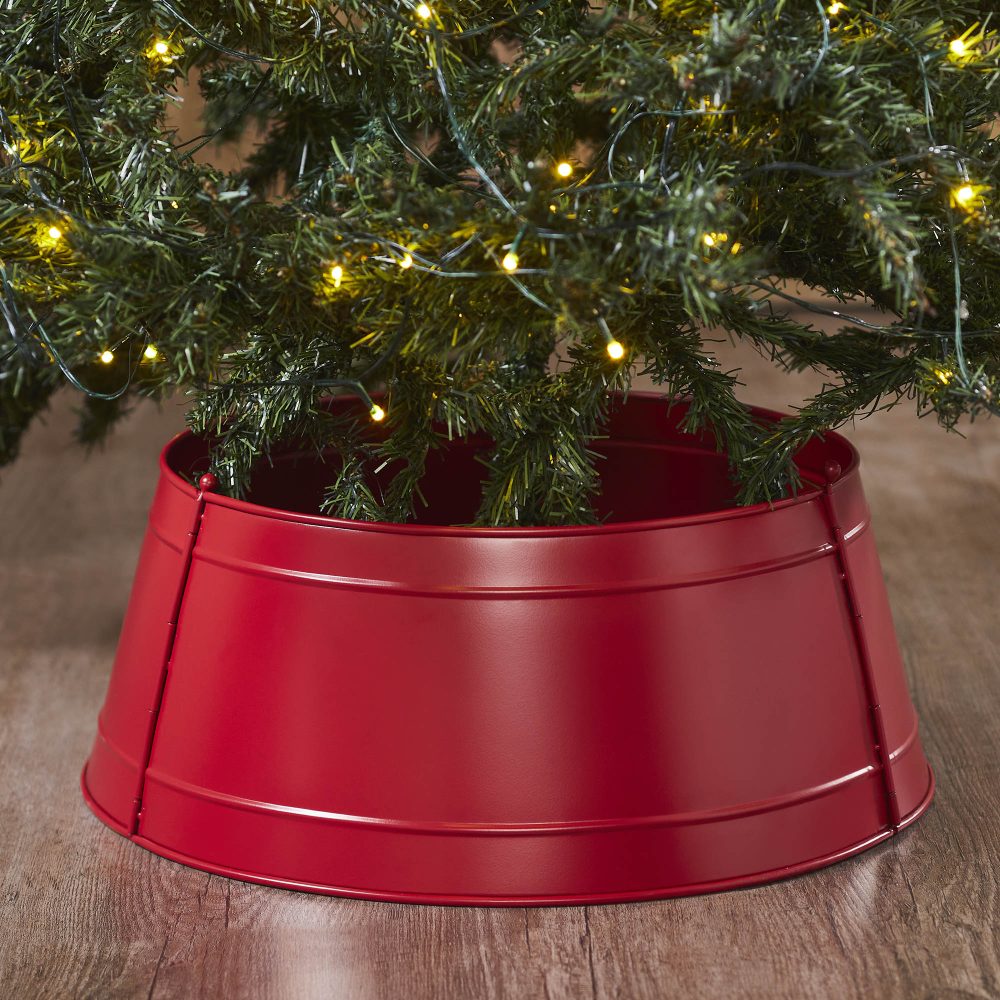- Presenting the VHC Brands Metal Christmas Tree Collar in a striking Barn Red hue, designed to infuse your holiday decor with a touch of warmth and charm.