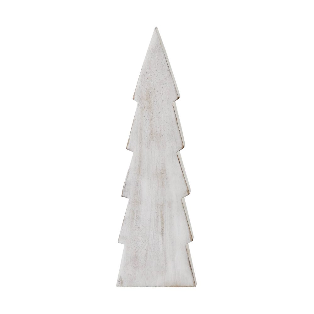 - Crafted from tropical wood, this figurine features a simple yet charming Christmas tree design adorned with distressed accents, offering a rustic and vintage-inspired look.