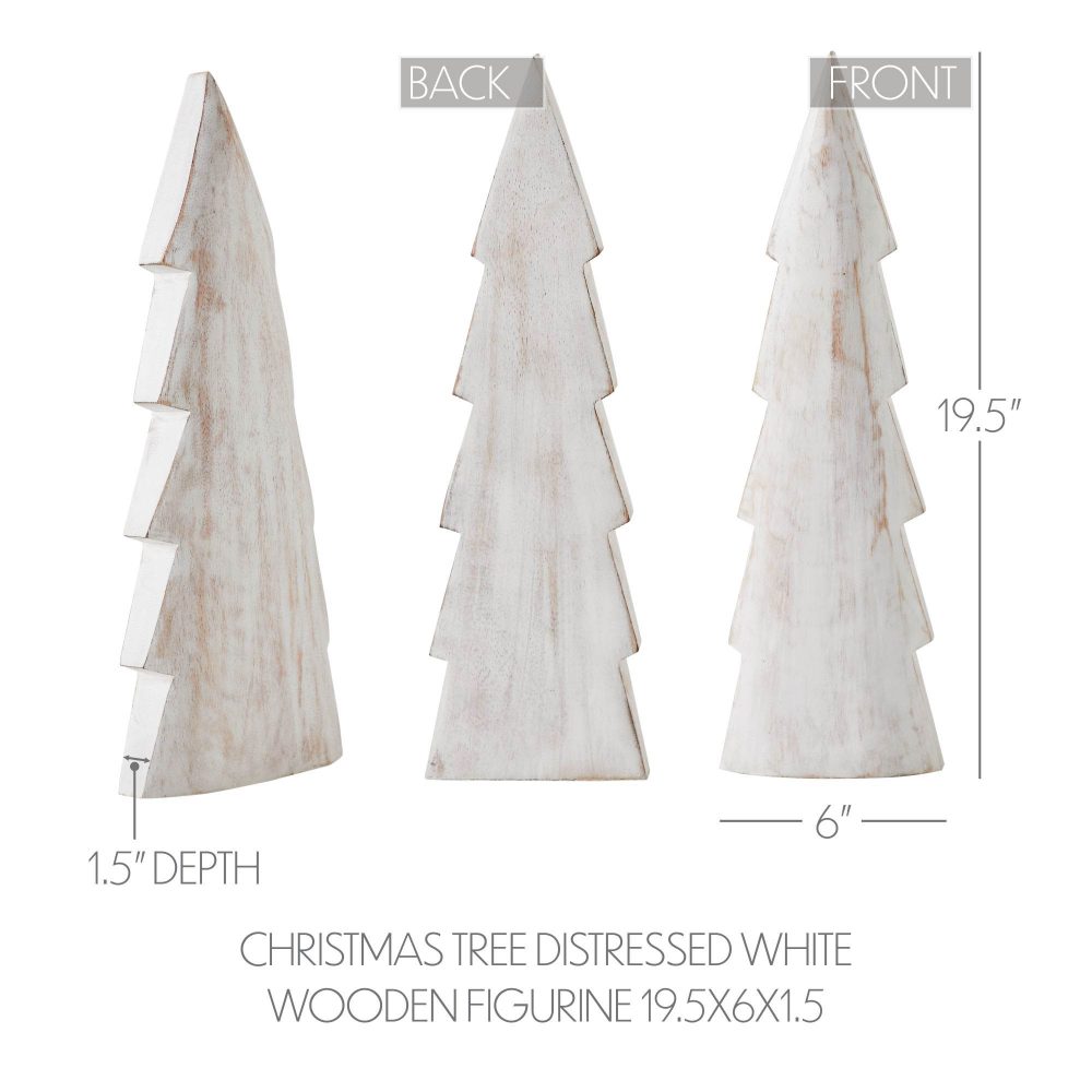 - Presenting the VHC Brands Tropical Wood Christmas Tree Distressed White Wooden Figurine, measuring 19.5x6x1.5 inches, ideal for adding a festive touch to your winter and Christmas home decor.