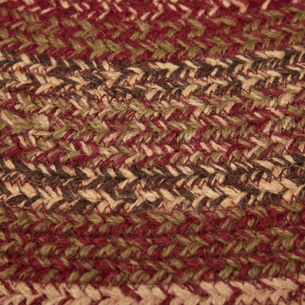 Create a warm, homey feeling to doorways and kitchens with deep primitive colors in a curl-resistant jute blend that adds style and safety anywhere a small accent rug is needed. The Cider Mill Jute Rug measures 16.5x33 inches and features a classic half circle shape and tight braids constructed with a durable jute blend. The special blend relaxes faster and stays flat. Features a blend of burgundy, tan and olive green for a dark, rustic look that complements a wide array of country farmhouse decor.
