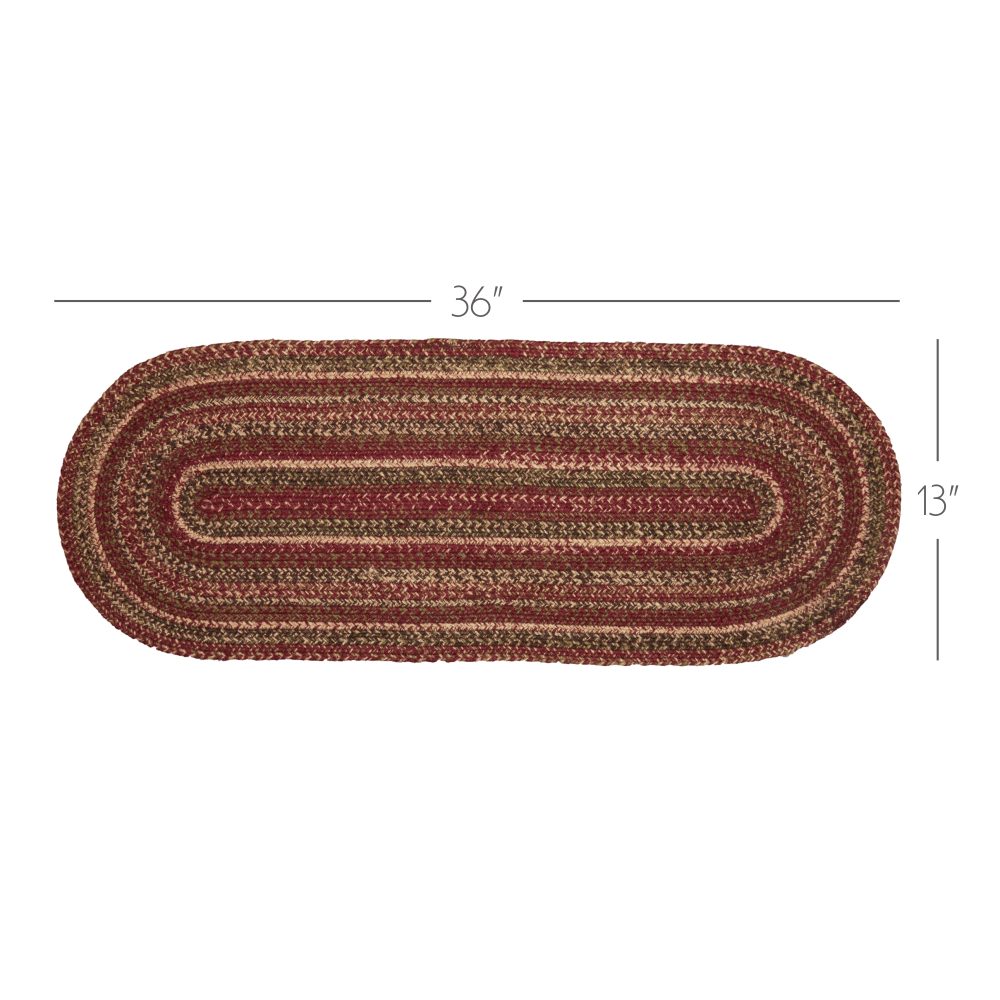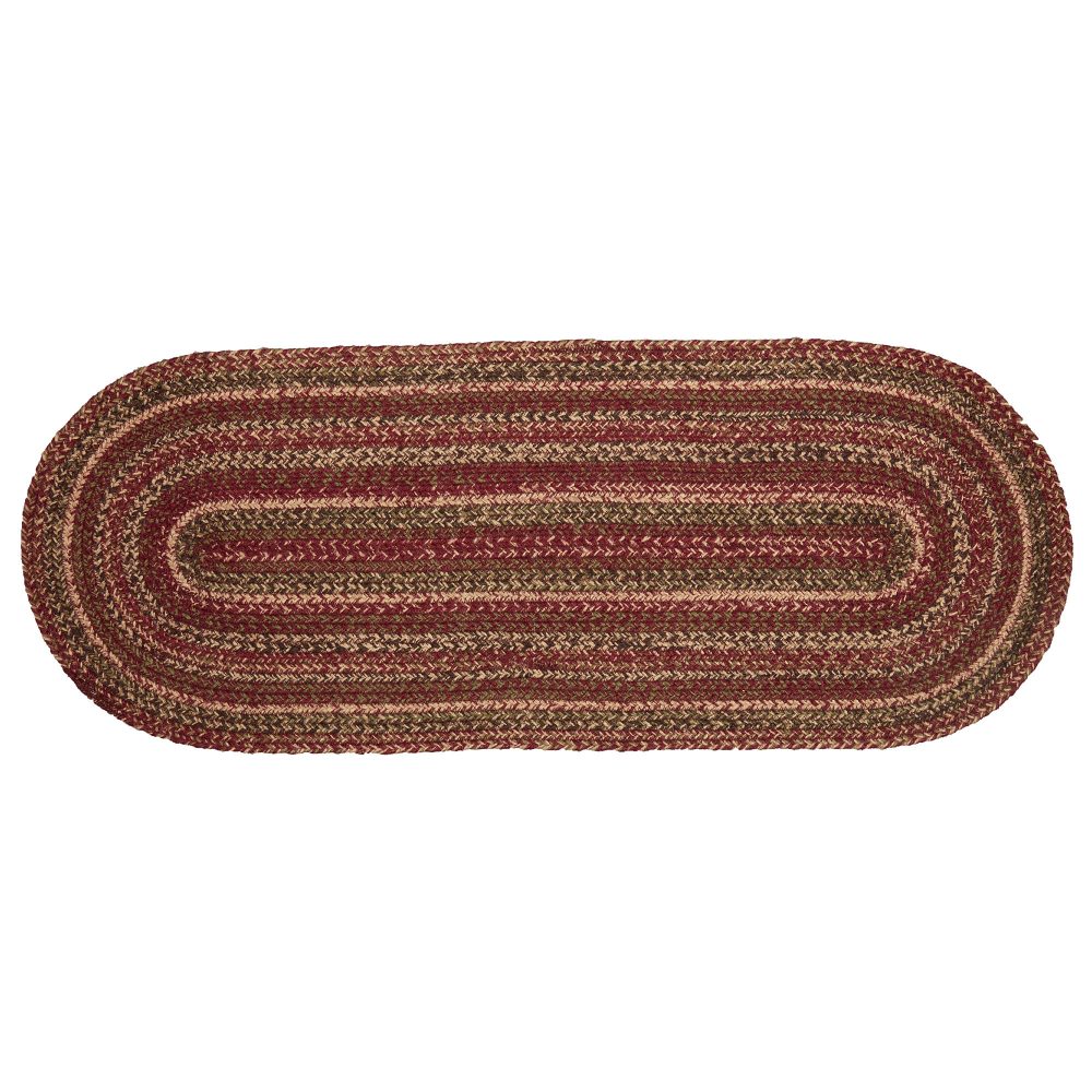 Create a warm, cozy table for friends and family to gather round on cold fall nights with autumnal tones and classic texture. The Cider Mill Jute Runner includes one table runner measuring 13x36 inches made from a premium Jute blend. The rich texture of braided jute is given a primitive country feel with burgundy, natural tan and olive green tones for a casual log cabin style. Complete your tabletop decor with other pieces from the Cider Mill Jute Collection by VHC for vintage farmhouse style.