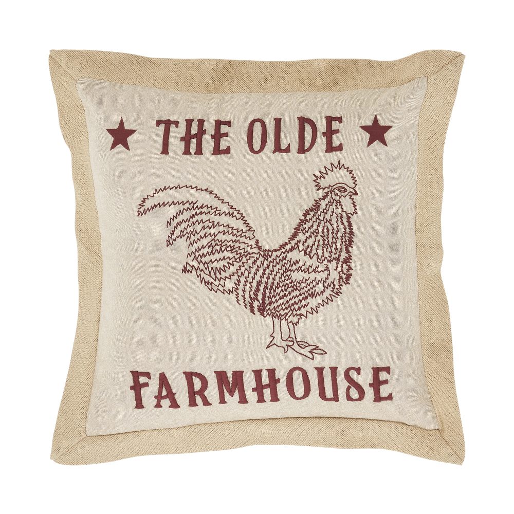 - COUNTRY EMBROIDERY: Old-fashioned embroidery adds western charm with The Olde Farmhouse embroidered in barn red with two five-point star accents. A central embroidery of a rooster adds a playful element that vintage farmhouse lovers and chicken enthusiasts alike will enjoy.