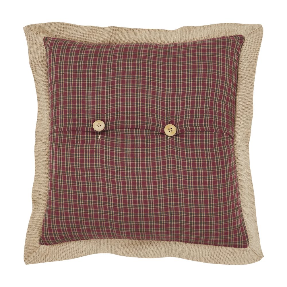 Nothing says country like barn red and roosters! Add a warm, farmhouse look to your home with the Cider Mill Olde Farmhouse Pillow. The square accent pillow measures 18x18 inches and features a soft tan edging and a beige central fabric with barn red embroidery. The embroidery features the words, The Olde Farmhouse in a western-style font that is flanked by two five-point stars. In the middle is a bold rooster design in red. The design reverses to red and forest green plaid with button-style closures for easy cleaning. It is machine washable and iron safe. Coordinates with the Cider Mill Collection by VHC for everything you need to bring your country cottage decor dreams to life.