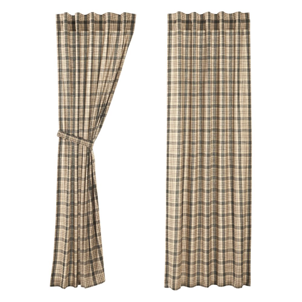 - PRIMITIVE COUNTRY CURTAIN: Includes two 84 by 40 inch 100% cotton window panels with a 2-inch header and a 3.25-inch rod pocket. Includes two matching tiebacks.