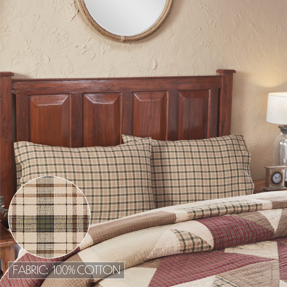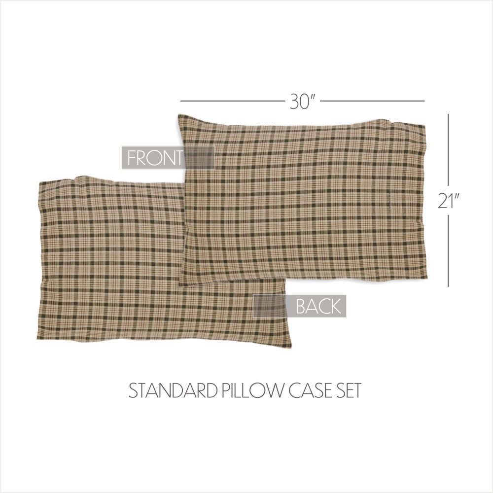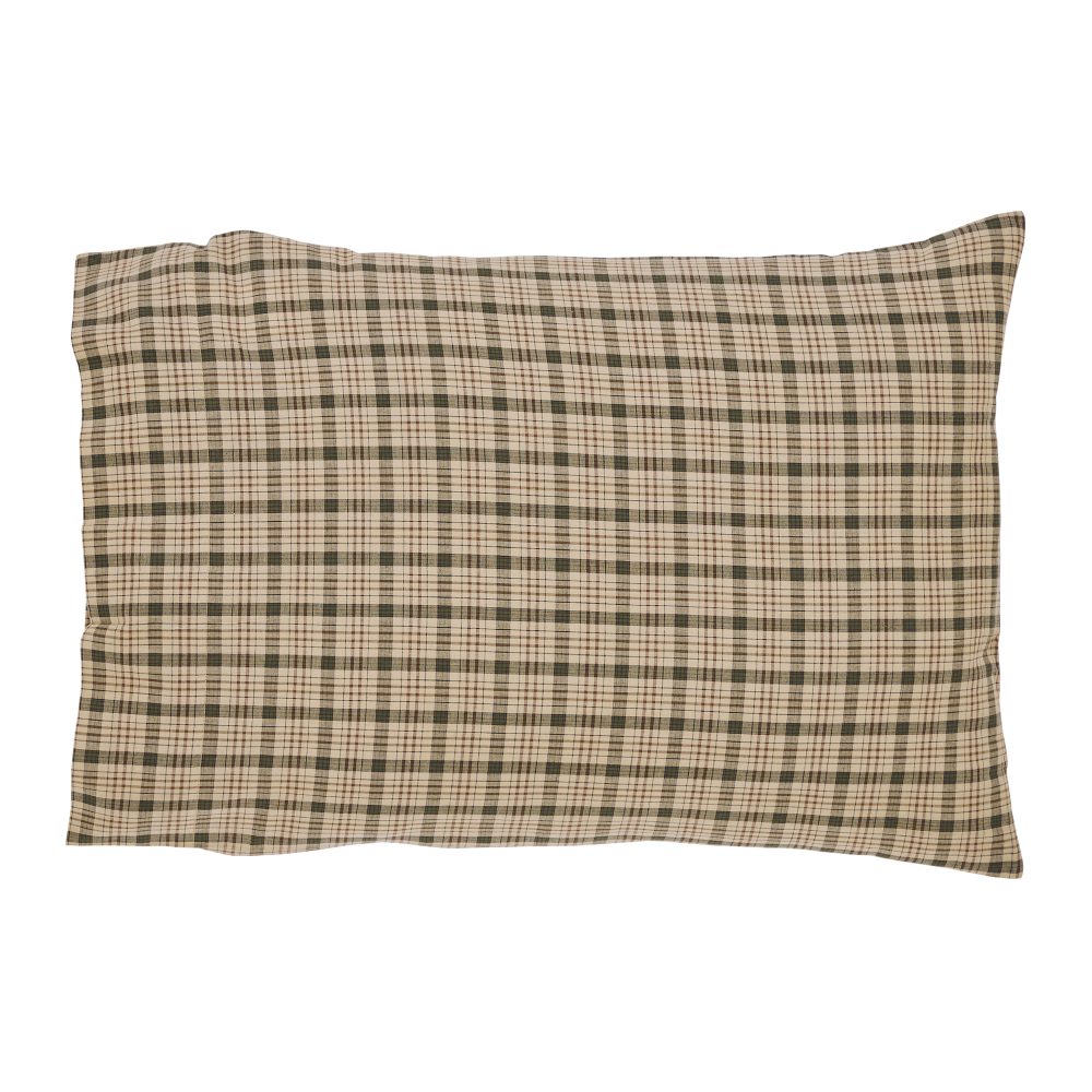 Relax in comfort with soft, 100 percent cotton fabric in a traditional plaid with relaxing stripes of tan, forest green and russet brown for a casual, French country cottage look. The Cider Mill Standard Pillow Case Set includes two 21x30 inch covers in warm shades to bring rustic country style to a simple tartan print. Coordinate with bedding and more from the Cider Mill Collection by VHC for more casual designs that elevate your classic country decor.